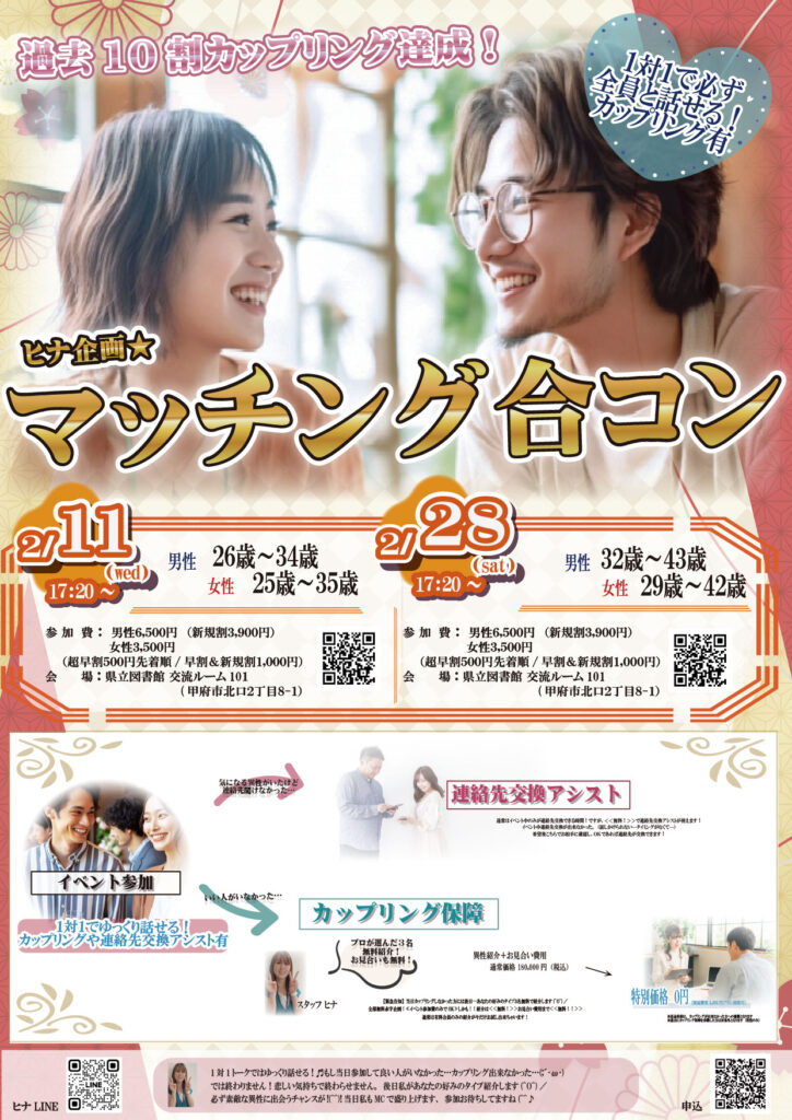 第1694回 ヒナ企画★【24~33歳くらい】優しい&安定収入男性とマッチング合コン(カップリングあり!)