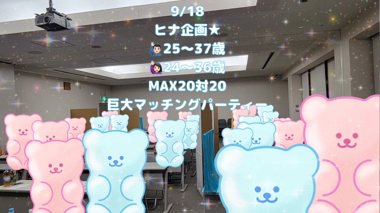 ヒナ企画★【男性25~37歳、女性24~36歳】MAX20対20 巨大マッチングパーティー の報告(^^)/~~~