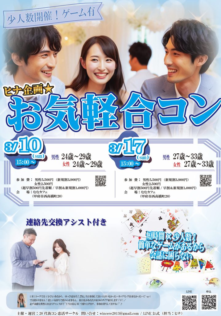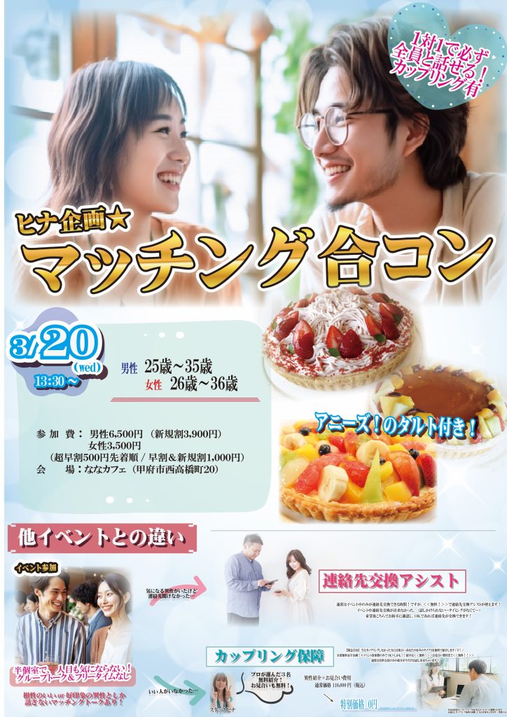 ヒナ企画★マッチング合コン 〈相性のいいor好印象の異性のみと話すマッチングトーク付き〉