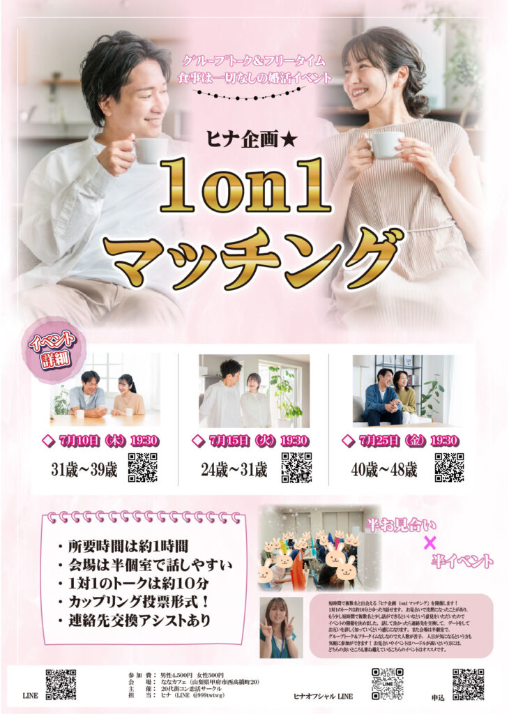 ヒナ企画★1on1マッチング 〈短時間×複数名 グループトークやフリータイムは一切なし〉
