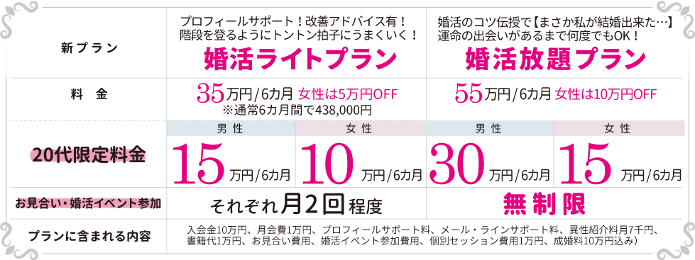 6カ月間別途費用なし!婚活イベント参加費・お見合い料込