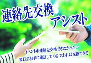 当日連絡先交換できなくても、後日交換ができるかもしれない「連絡先交換アシスト」も導入しているイベントですよ!是非参加お待ちしてます!